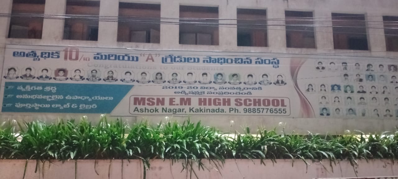 MSN EM High School Ashoknagar Sai baba temle road D.NO: 67-2-13 kakinada, Sai Srinivasa Heights, 67-10-6, Ashok Nagar St, Mehar Nagar, G.P.T.Colony, Suryaraopeta, Andhra Pradesh 533003, India